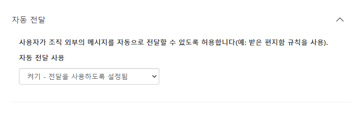사용자가 조직 외부의 메시지를 자동으로 전달할 수 있도록 허용합니다(예: 받은 편지함 규칙을 사용).