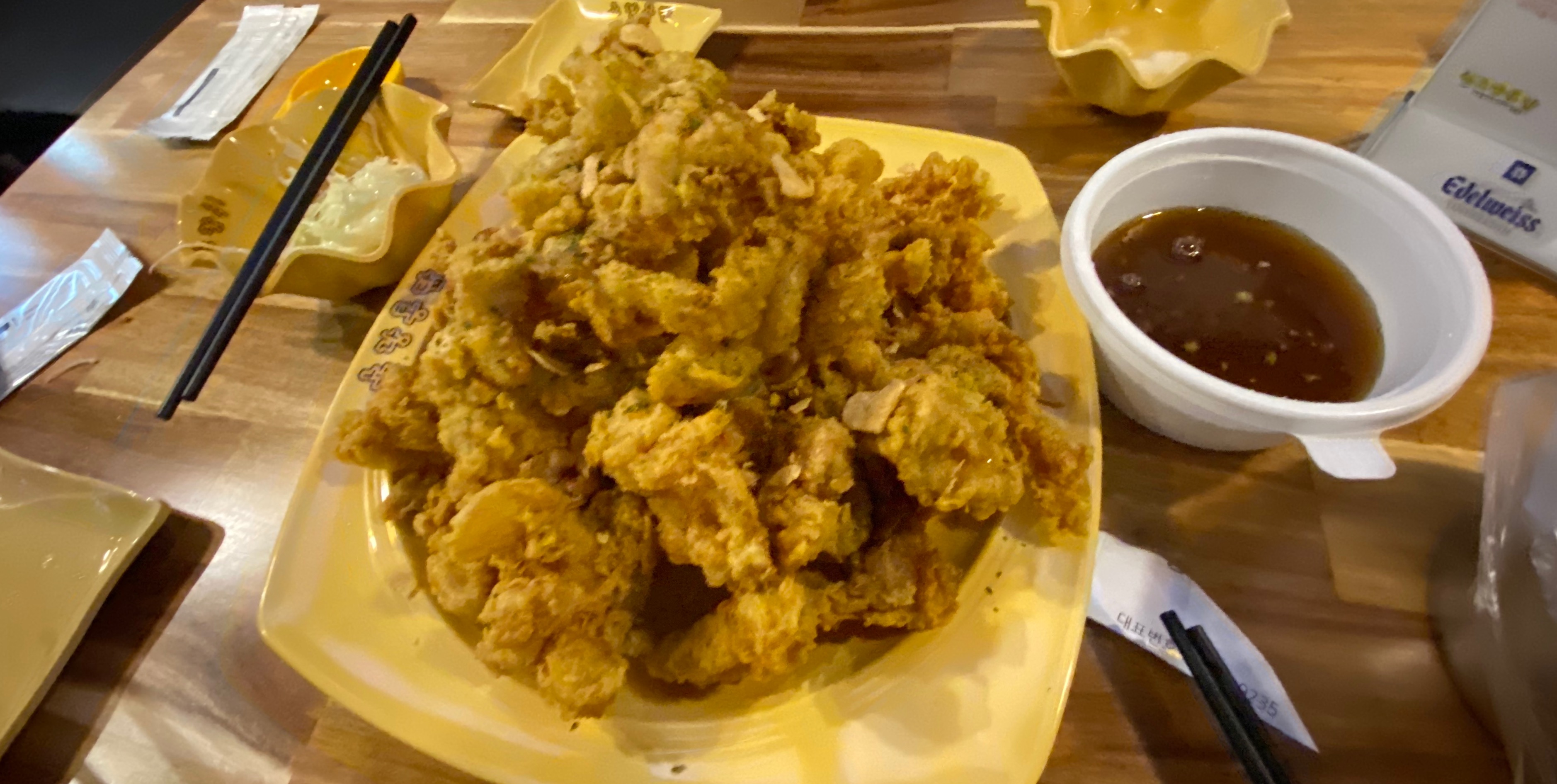 마늘소스에 찍어 먹었는데 그냥 치킨이었음