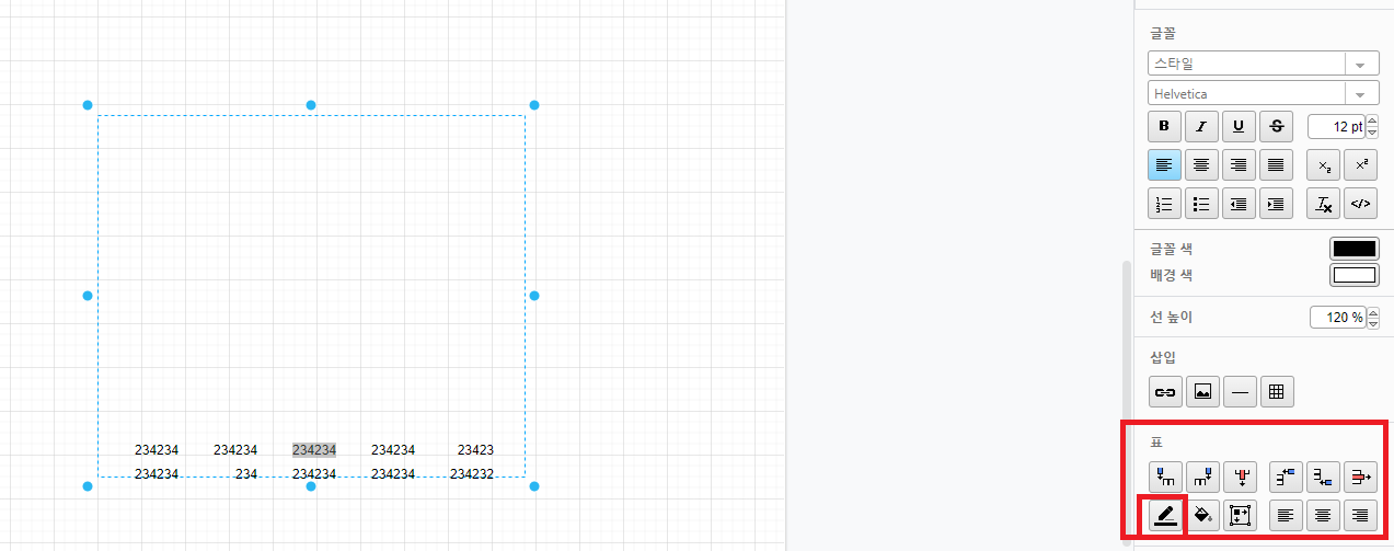 표 입력 더블 클릭 아래와 같이 표 설정값이 나온다